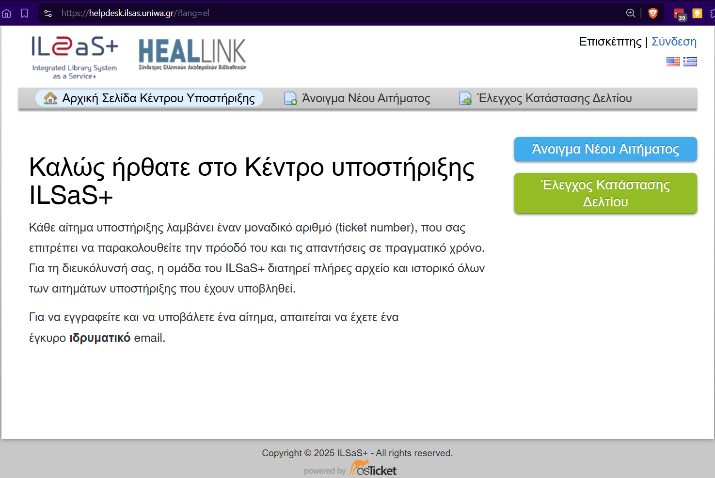 Η ενότητα περιλαμβάνει το υλικό τεκμηρίωσης για το υποσύστημα διαχείρισης αιτημάτων του **Κέντρου Υποστήριξης ILSaS+** που υλοποιοείται με την εφαρμογή OSTicket.